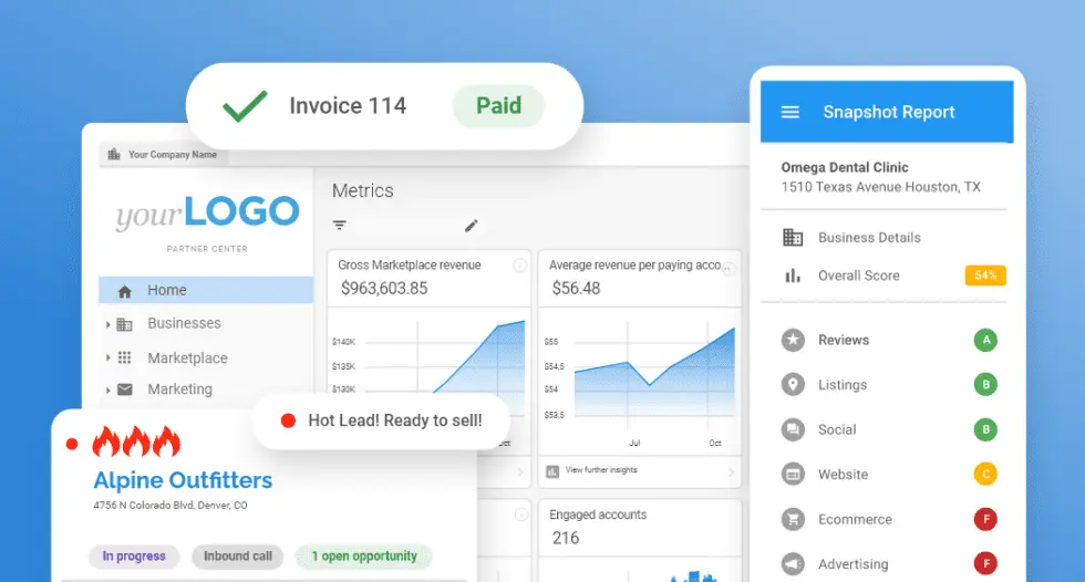 For agencies and freelancers selling Google/SEO/reviews/web/ads services to SMBs.